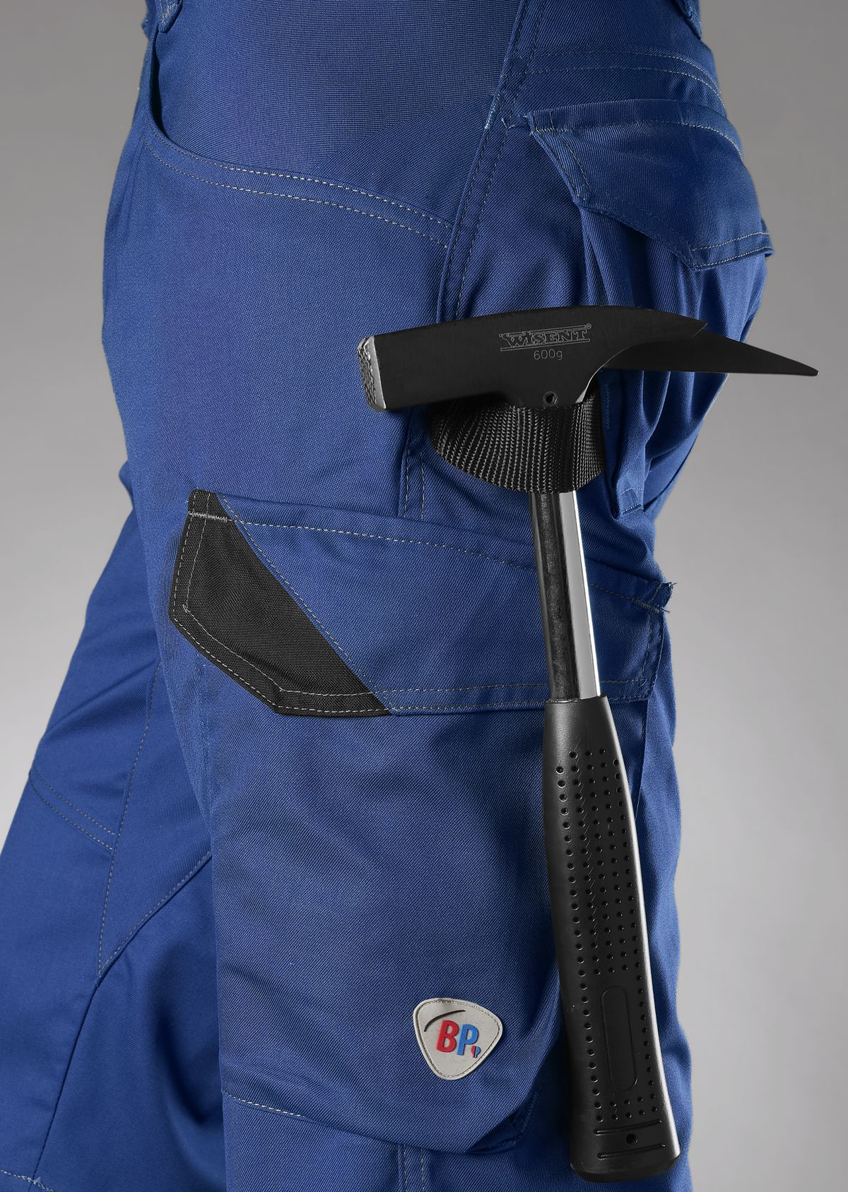 Schlanke Silhouette, Dehnbund im Rücken für optimalen Sitz, ergonomischer Schnitt, D-Ring zum Befestigen von Accessoires, Hammerschlaufe, 2 Seitentaschen mit Stretcheinsatz für einen leichteren Eingriff, 2 mit Patte verschließbare Gesäßtaschen, 1 geräumige Schenkeltasche mit integrierter Smartphonetasche, freihängende doppelte Zollstocktasche