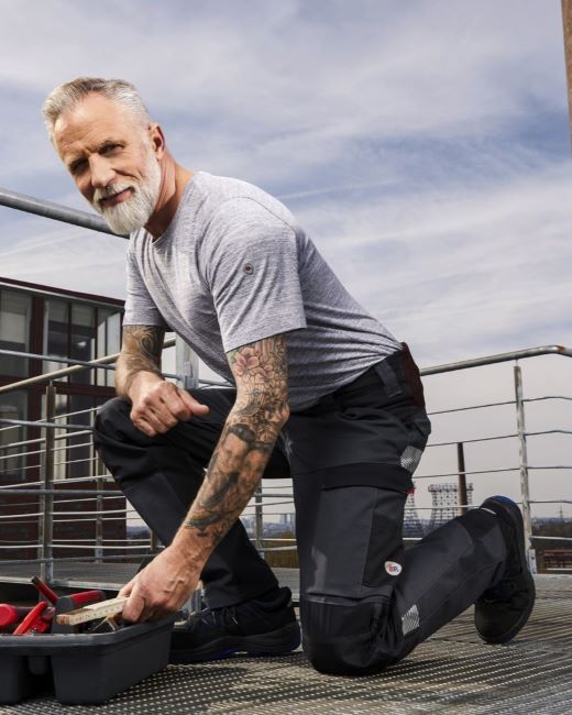 - Arbeitshosen mit oder ohne Kniepolstertaschen: Für kniende Tätigkeiten einsetzbar, kompatibel mit Knieschutz nach EN 14404.