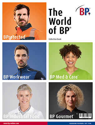 Alle Berufsgruppen in einem Katalog: Medizin & Pflege, Handwerk & Industrie, Gastronomie, Schutzkleidung, HACCP-Kleidung.