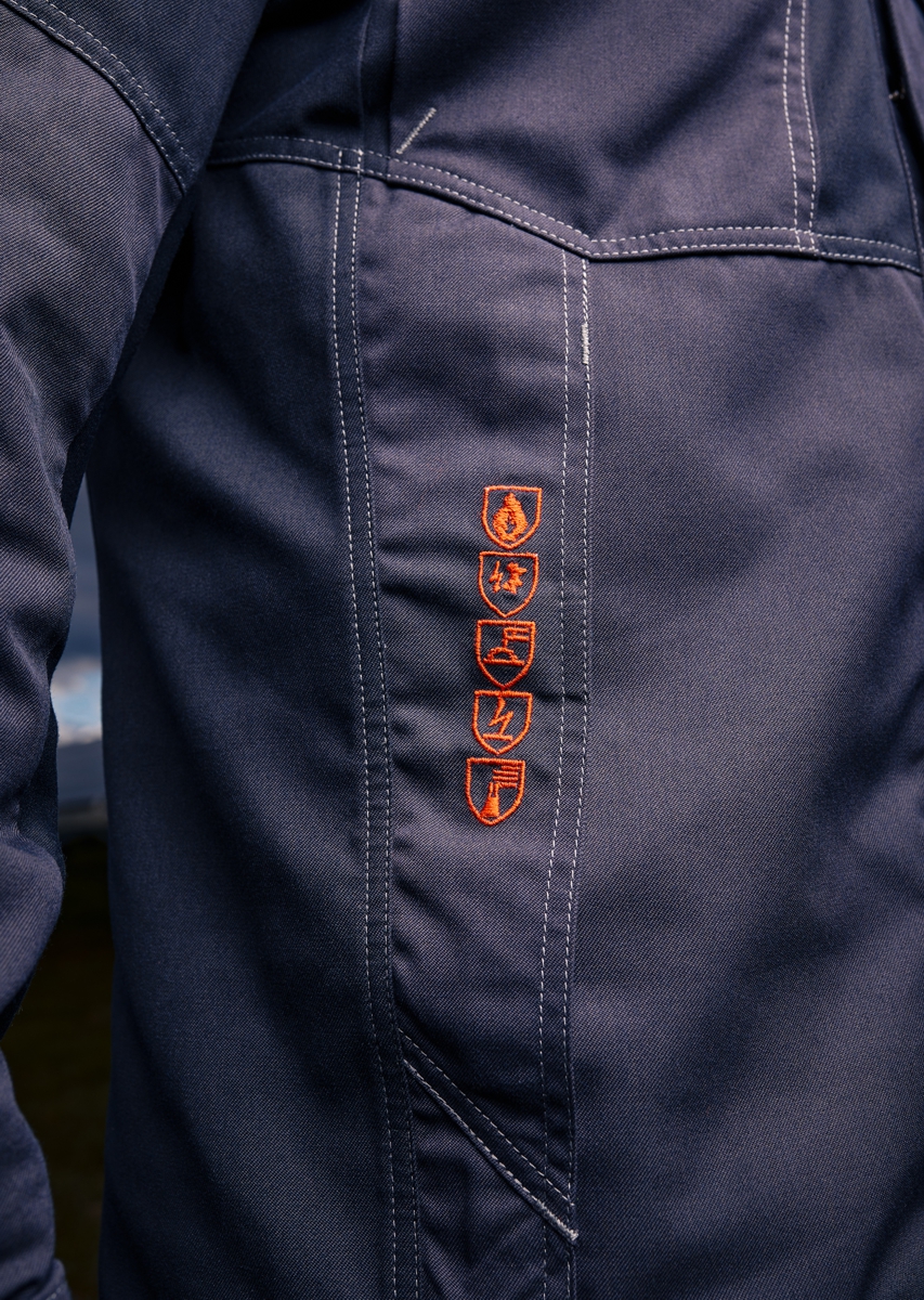 35% Aramid, 30% Modacryl, 25% Baumwolle, 9% Polyamid, 1% Sonstige Fasern