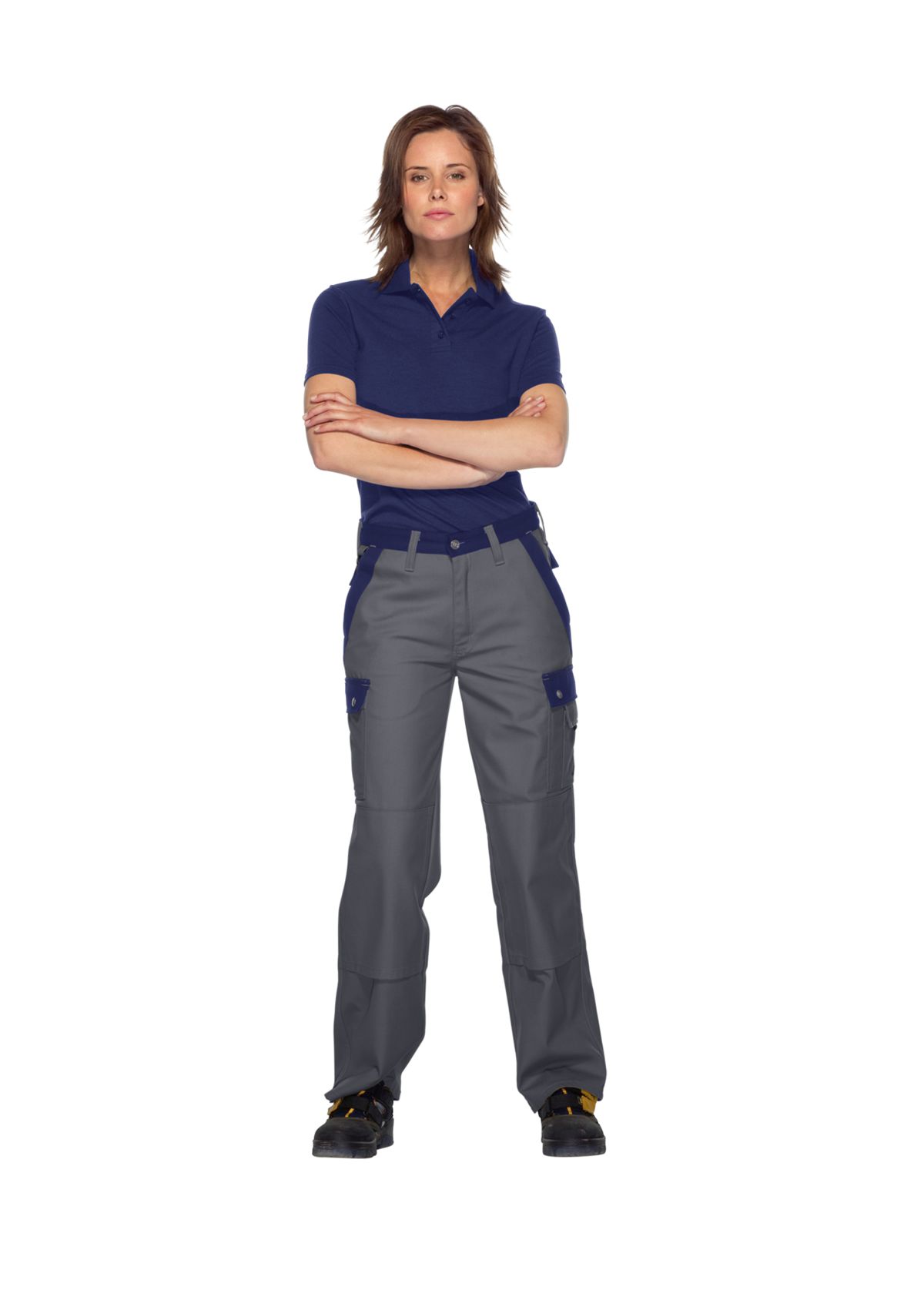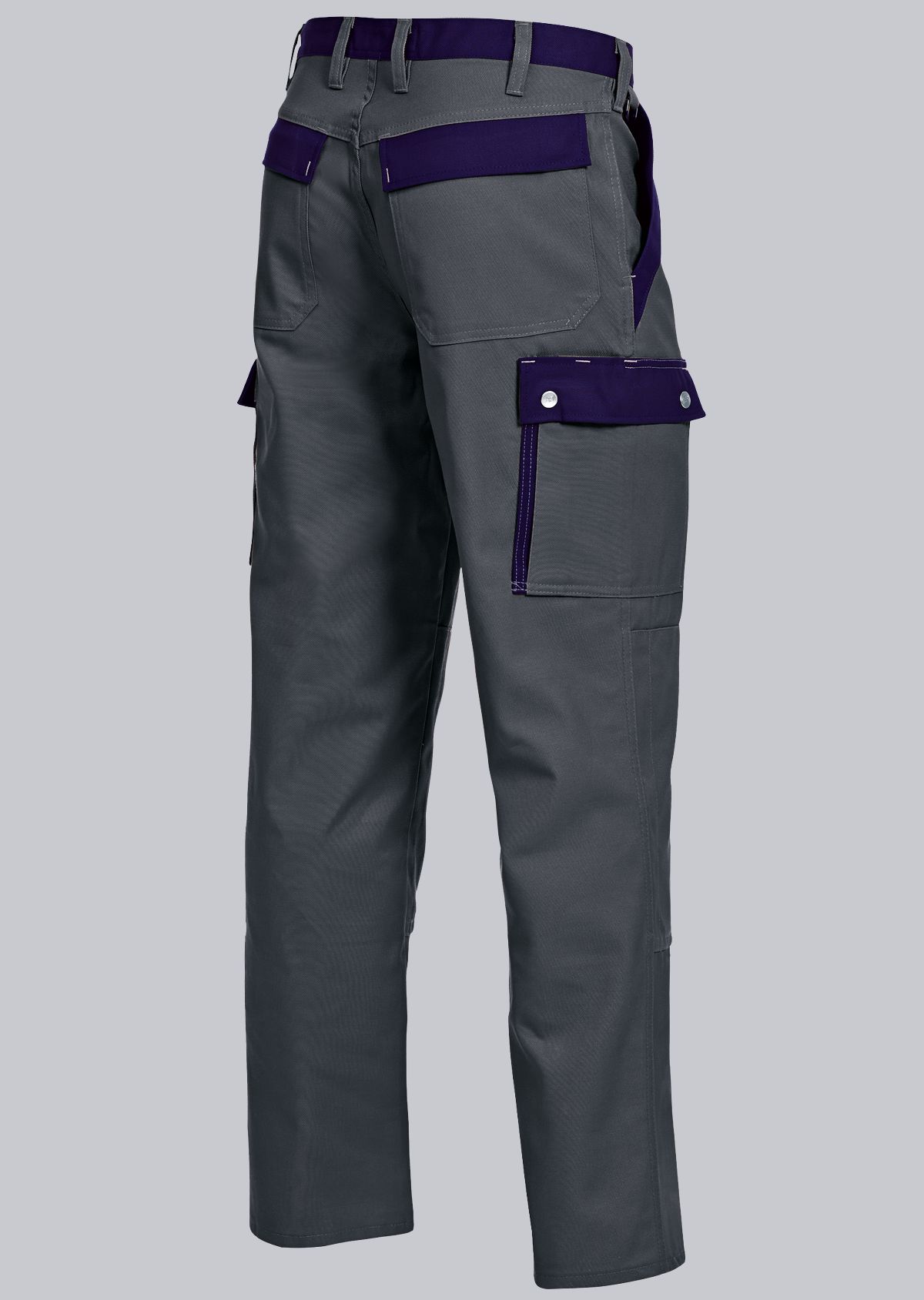 Jeansform mit Sattel, Gürtelschlaufen, D-Ring, 2 Seitentaschen, 2 verschließbare Schenkeltaschen, davon 1 mit aufgesetzter Handy-Tasche und 1 mit integrierter Zollstocktasche, 2 mit Patte und Drucker verschließbare Gesäßtaschen (Halbtresor), Knieeinschubtaschen aus Grundware für Kniepolster 1839 (bitte separat bestellen)