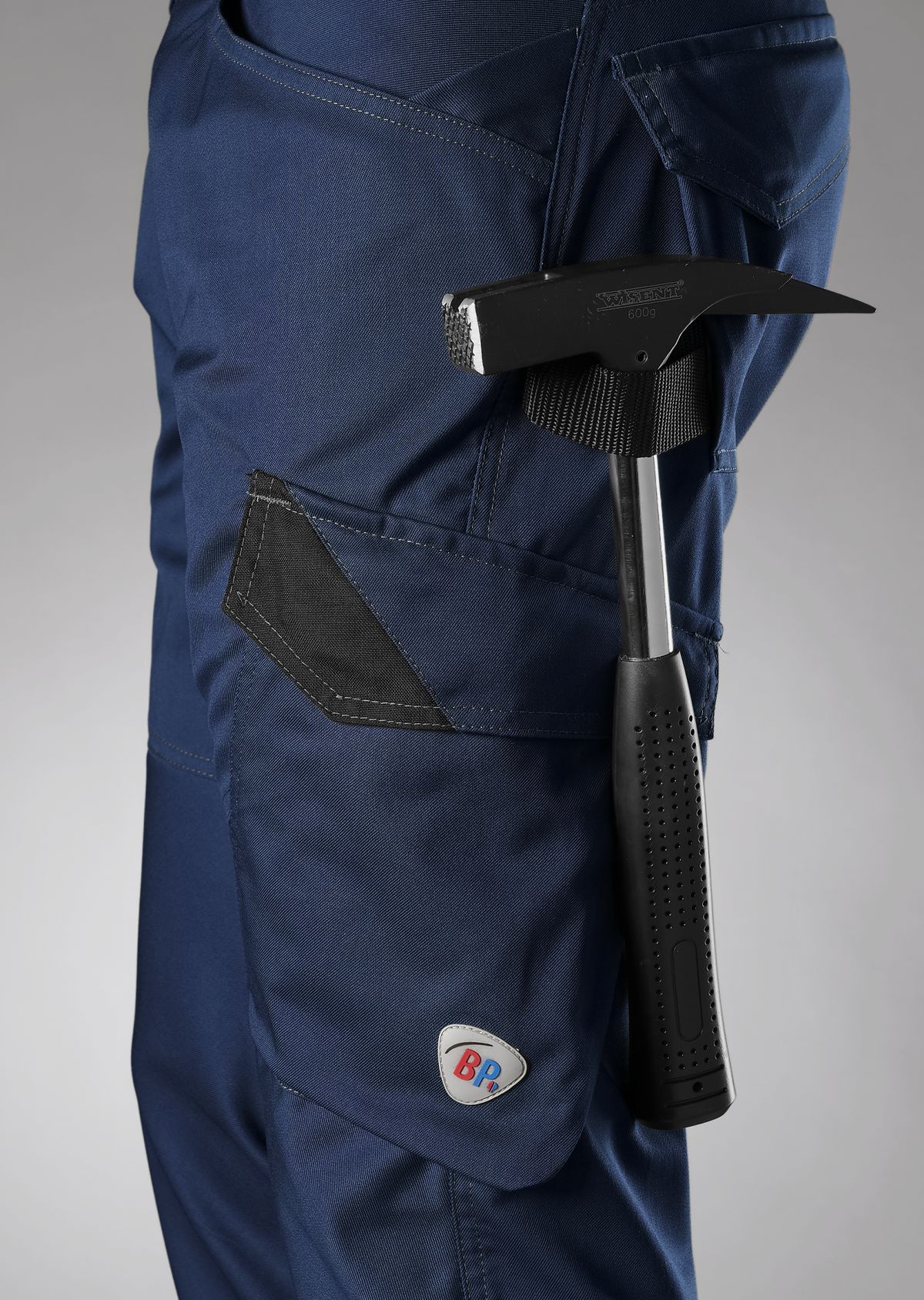 Schlanke Silhouette, Dehnbund im Rücken für optimalen Sitz, ergonomischer Schnitt, D-Ring zum Befestigen von Accessoires, Hammerschlaufe, 2 Seitentaschen mit Stretcheinsatz für einen leichteren Eingriff, 2 mit Patte verschließbare Gesäßtaschen, Reflexelemente am Bein, 1 geräumige Schenkeltasche mit integrierter Smartphonetasche, freihängende doppelte Zollstocktasche
