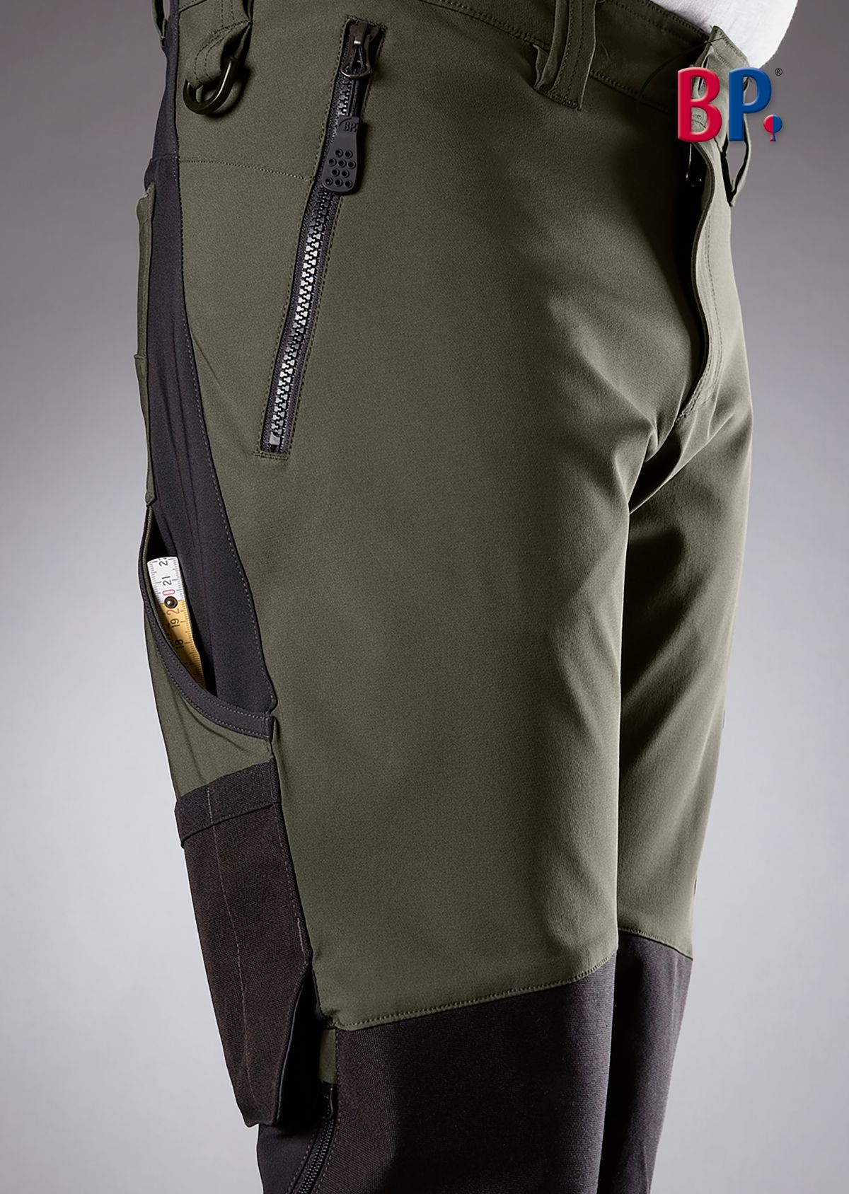Slank silhouet, ergonomische snit, verhoogde elastische tailleband aan de achterkant voor optimale pasvorm, 2 zijzakken met ritssluiting, 2 achterzakken, 1 ruime beenzak met ritssluiting en opgezette smartphonezak, D-ring voor bevestigen van accessoires, loshangende dubbele duimstokzak, voorgevormde broekspijpen, reflecterende elementen in donkergrijs op broekspijpen, Cordura®-kniezakken met ritssluiting en ventilatie-opening (BP® Kniekussens 1839-000-53 moeten apart besteld worden)